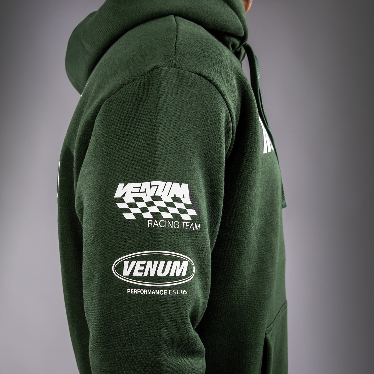 La felpa Venum Motorsport in Deep Forest è un pullover a vestibilità regolare con tasca a marsupio e cappuccio con cordino. Con toppe stampate e ricamate in arancione e bianco ispirate ai motorsport di Venum, questa felpa è pronta per la pista!